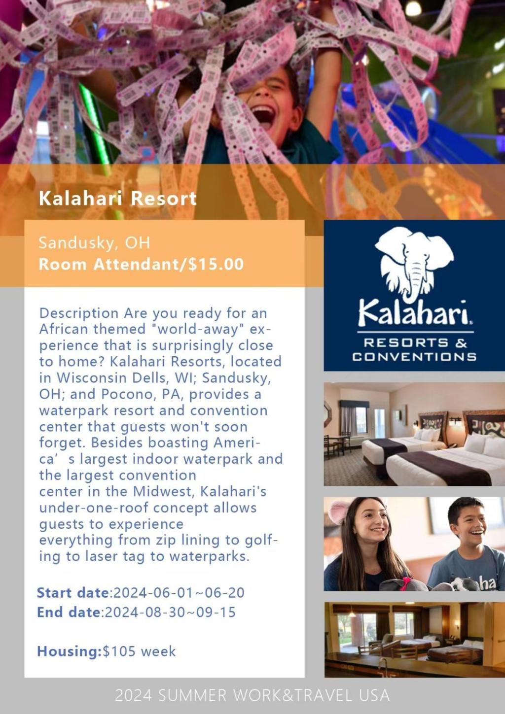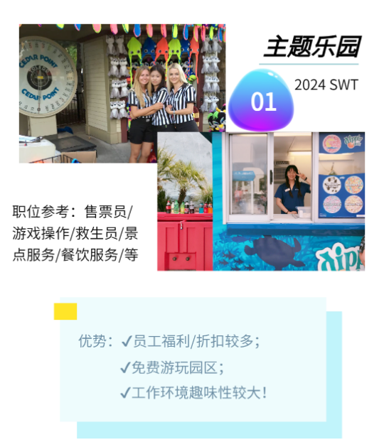 针对全校不限年级专业,基本口语沟通即可,上海市出入境全球最好的sponsor:CIEE《国际教育交流协会支持》,匹配的岗位都是最优质的,每年的出行时间6中旬月-9月,(结束工作后有1个月合法旅行期可在美国旅行或选择提早按照学校要求时间回国)岗位可按照意向和口语等级综合匹配,岗位大多分部在国家公园,游乐园,旅游胜地,大型度假村酒店,商店超市等,都是基础类服务类工作,包含{销售助理,烹饪助理,餐饮服务,公园向导,主持人,解说员,卡通表演,酒店客房服务员}等,地点多在东西部旅游城市,东部沿岸及五大湖周边。