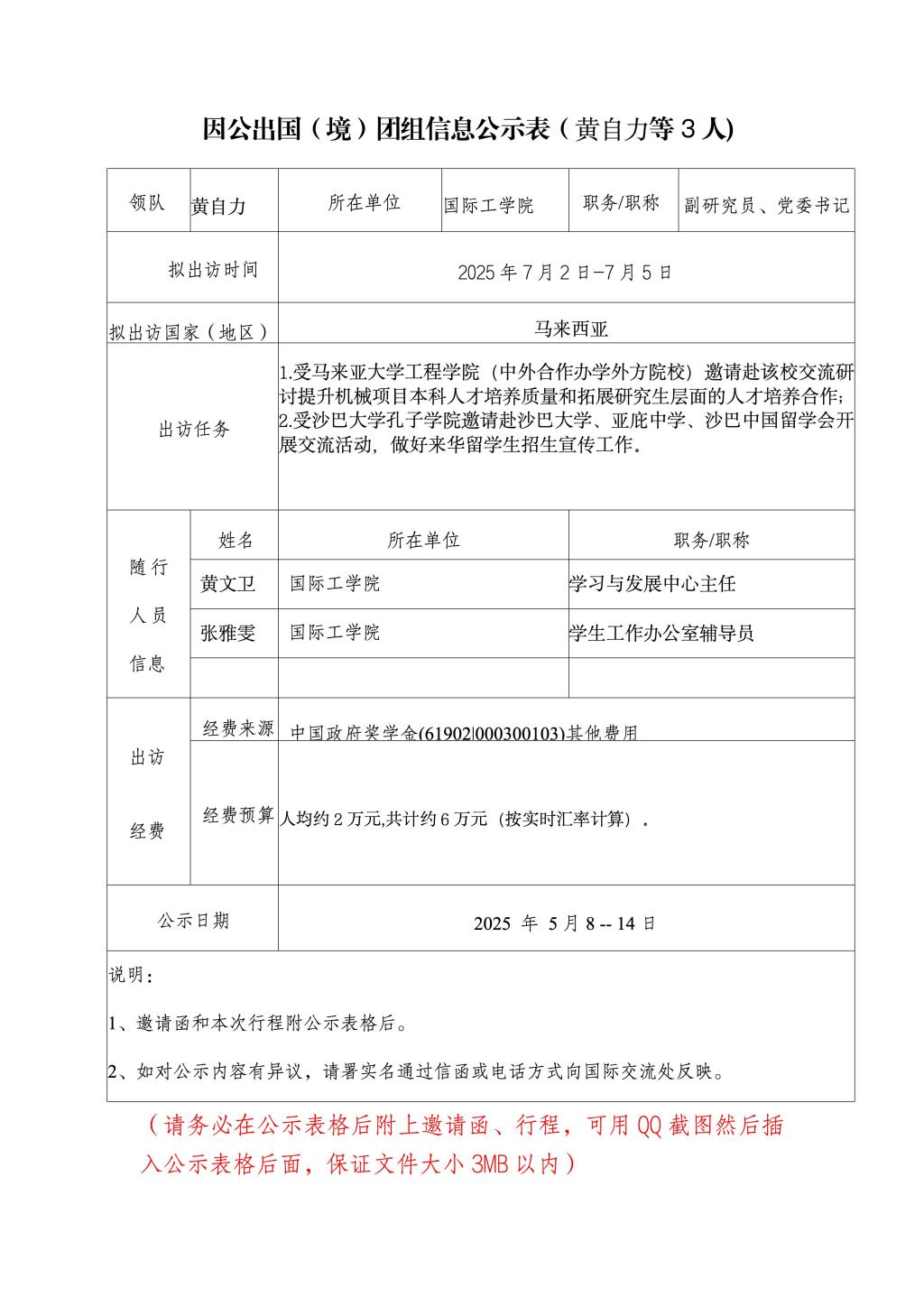 因公出国(境)团组信息公示表(尹筑嘉等4人)