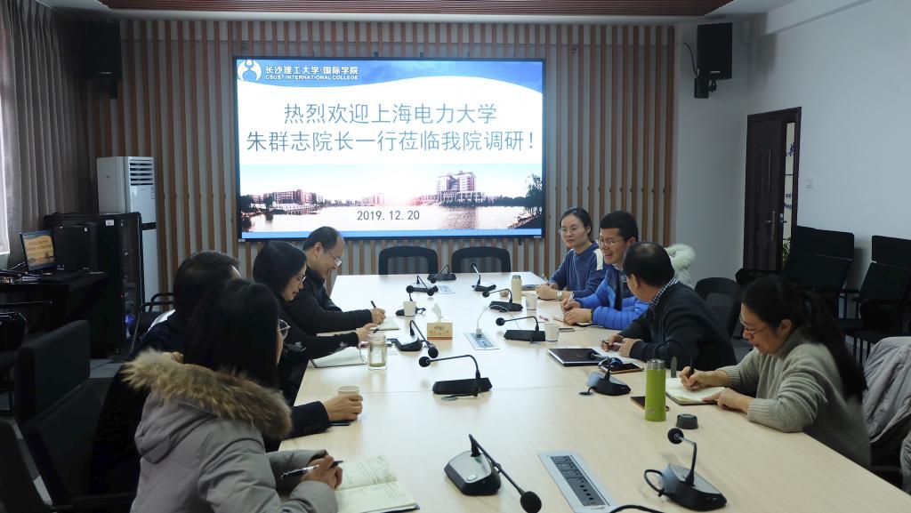 12月20日上午,上海电力大学能源与机械工程学院朱群志院长率该校国交学院办公室主任王广珍、能源与动力工程研究所副所长何平以及能源与机械工程学院教师王程遥一行4人来院调研交流中外合作办学项目申报与管理工作。国际学院院长陈瑜、副院长秦卫星、国际交流处办公室主任杨欣以及中外合作办学教务办公室负责人罗帅接待了调研团并参与座谈。座谈会由陈瑜主持。