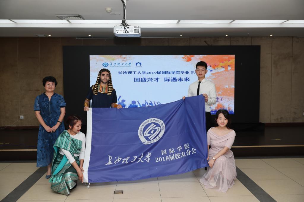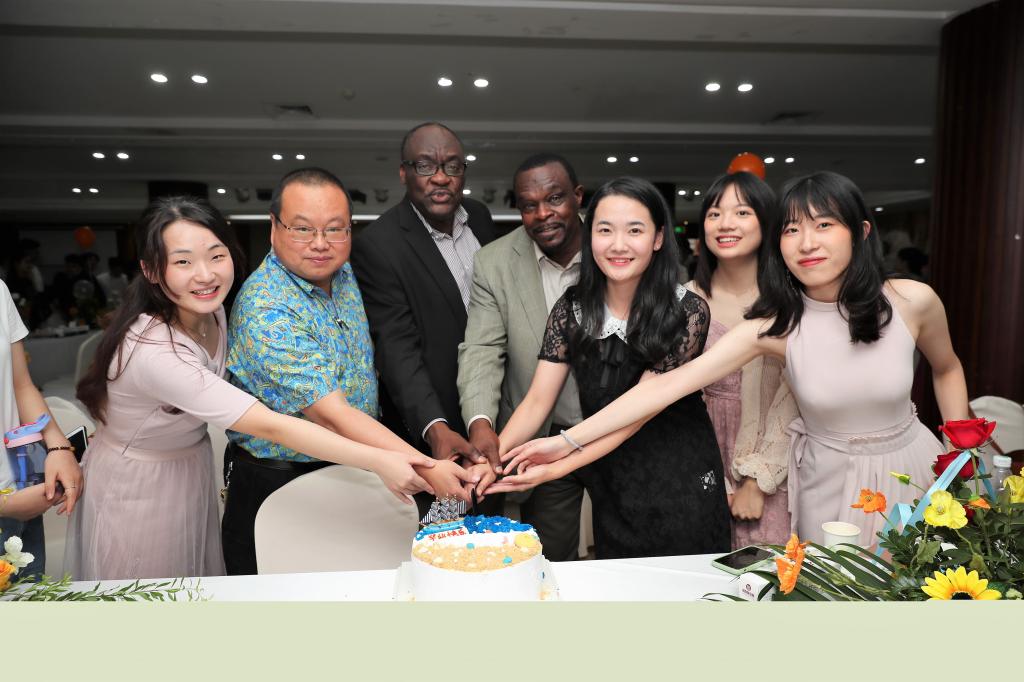 In order to celebrate the successful graduation of 28 international students (including students majored in language) from the first Chinese-Foreign Joint Education Program (Civil Engineering), CSUST International College held the inaugural meeting of the 2019 Alumni Chapter & graduation party on the afternoon of June 23 in the multi-purpose hall at the Center for International Academic Exchanges of Yuntang Campus. This event also promises to enhance the cultural exchange between Chinese and foreign students. The attendees included Fu Chang’e, the Member of the Party Committee of the School and Secretary of the General Party Branch of the International College, Chen Yu, the Dean of the International College, Wu Zhenhua, the Deputy Secretary of the General Party Branch and Vice Dean, Qin Weixing, the Vice Dean, Gan Haiying, the Vice Dean, the faculty and staff in the Office of Chinese-Foreign Joint Education Program and  International Student Office, as well as all the Chinese and foreign graduates (and the students who have completed the courses) and students representatives of other grades. In addition, Zheng Yanheng, the Deputy Director of the Alumni Liaison and Social Cooperation Service Center, Dr. Baoshan Huang, the representative from the University of Tennessee-Knoxville, and Dr. Joseph Owino and Dr. Ignatius Fomunung, the representatives from the University of Tennessee at Chattanooga, were also invited to attend. The event was hosted by Chinese student He Yanjie , and Togolese student Ezoula Agoro Solange.