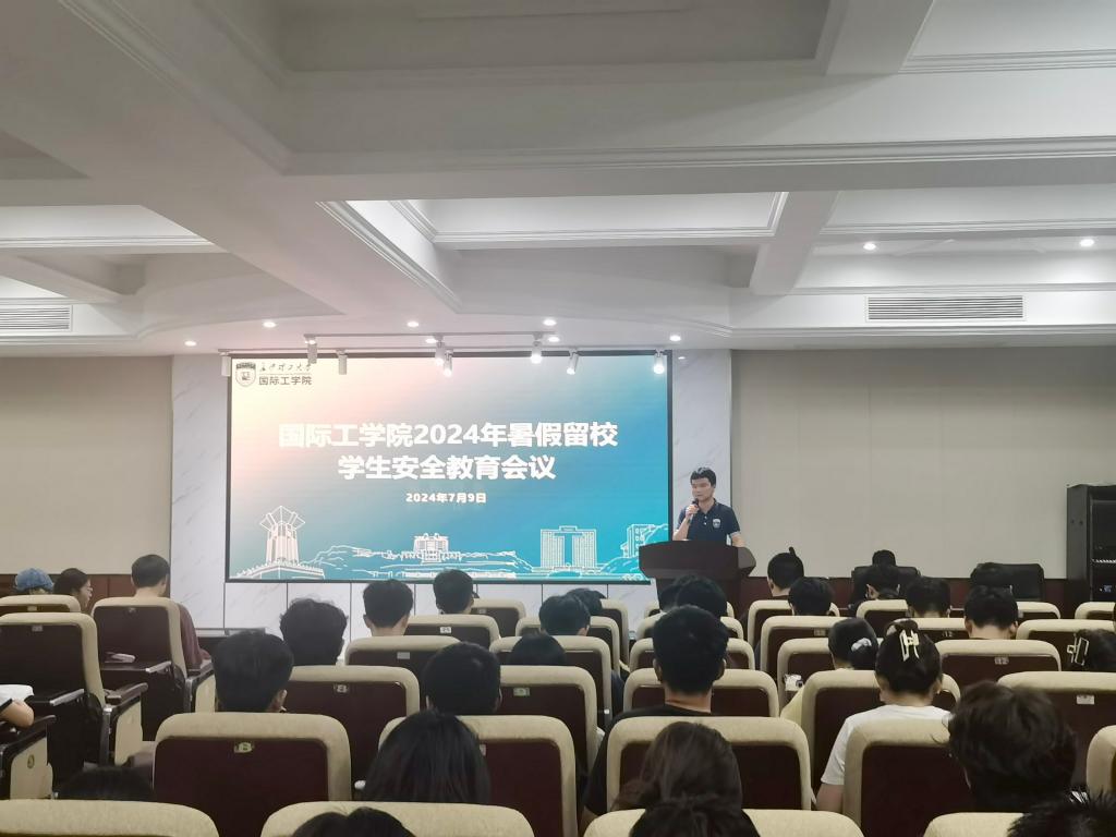 为切实做好暑假期间留校学生教育管理工作,维护校园安全稳定,7月9日晚,国际工学院于文科楼D207报告厅召开2024年暑假留校学生安全教育会议,学工办辅导员、全体留校学生参加会议,会议由辅导员魏涛主持。