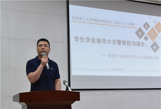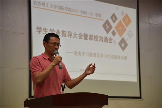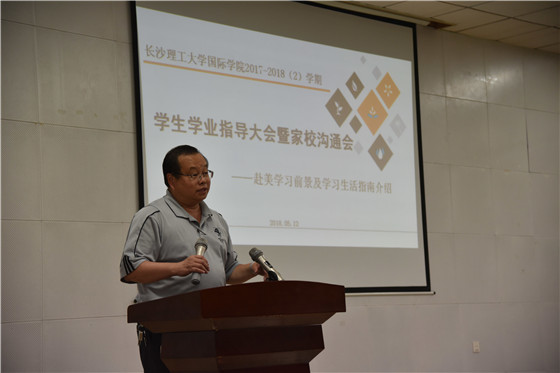 5月14日上午,国际学院2017-2018(2)学期学生学业指导大会暨家校沟通会在云塘校区文科楼圆厅顺利召开。此次会议邀请LETOU官网中外合作办学项目(土木工程专业)美方合作院校田纳西大学查塔努加分校工程与计算机科学学院土木工程系教授Ignatius Fomunung,美国田纳西大学诺克思维尔分校教授Huang Baoshan,美国肯尼索州立大学教授Yang Jidong作为主讲嘉宾,就学生赴美学习前景及学习生活指南进行介绍。国际学院院长陈瑜教授、中外合作办学项目办公室主任黄文卫、辅导员唐宏敏和刘森峙,全院学生及30多位家长代表出席了会议。学业指导大会由学院党委副书记兼副院长吴振华主持。