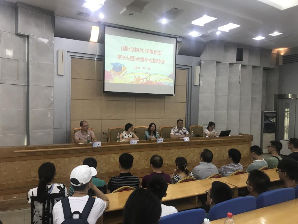 9月9日下午3点整,我院2018级新生家长见面会暨学业指导会在金盆岭校区办公大楼一会议室成功召开。校党委委员、国际学院党总支书记付嫦娥,国际学院院长陈瑜、副书记兼副院长吴振华、副院长秦卫星、部分教师代表和家长代表及2018级全体新生出席了本次会议。
