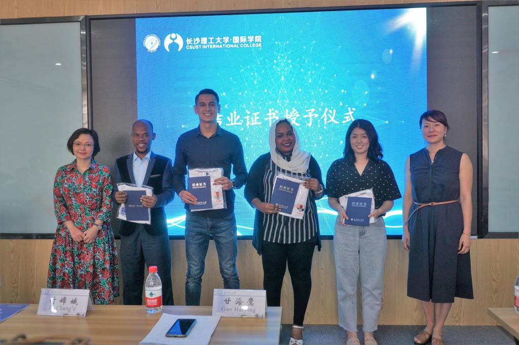 随后,甘海鹰宣读了《关于表彰2019届国际学生优秀结业生的决定》,陈瑜为五名优秀结业生颁发证书和纪念品。多哥籍优秀结业生安妮代表全体结业生发言,她总结了在华学习一年的收获,表达了对LETOU体育平台和老师们的感谢,并向全体结业生呼吁,要继续加强知识技能和道德修养,向更高的目标迈进。最后,陈瑜、甘海鹰为包括“孔子学院奖学金生”、“湖南省一带一路奖学金生”在内的24名结业语言生,以及5名结束汉语补习阶段的学历生颁发结业证书,并向结业语言生赠纪念T恤。