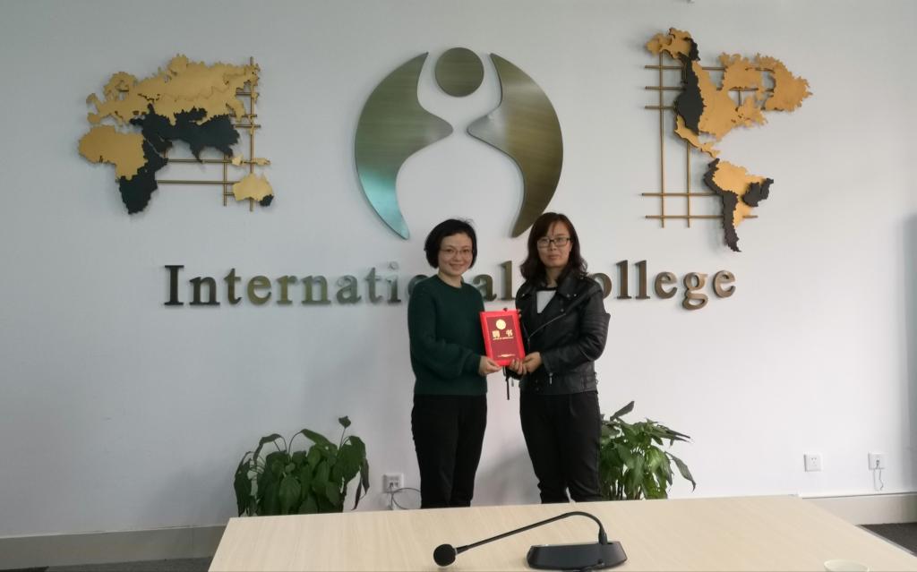 最后,陈瑜为学院新聘督导专家任延杰颁发聘书,对督导专家加盟国际化办学团队表达了热烈欢迎和衷心感谢,鼓励督导专家大胆开展工作,进一步规范国际化办学过程管理,提升国际化办学和人才培养水平,更好助力学校双一流建设。