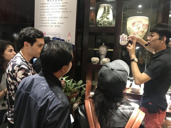 为加深国际学生对中国传统文化的理解,丰富国际学生在华学习的文化感知,加强知华友华,5月15日下午,“中国政府奖学金”留学生在国际学院国际学生工作办公室孙夕珺、梁佳老师的带领下赴雨花非遗馆进行文化体验活动。
