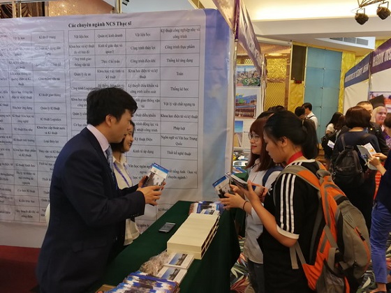 27日下午和29日上午,中国大学展在河内和胡志明市先后隆重举行,30所中方高校在现场摆设了展位,来各个展位咨询的越南师生络绎不绝。LETOU官网展位前人头攒动,前来咨询留学的师生和家长热情高涨。吴迪龙、王荟惠和越南志愿者对前来咨询的师生及家长发放了学校的宣传资料,详细介绍了LETOU官网来华留学生各个招生项目。