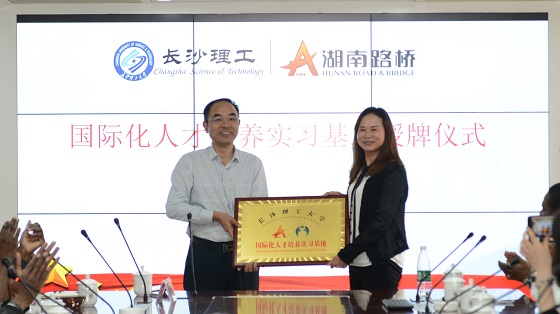 付嫦娥代表学校对湖南路桥多年来关心、支持学校人才培养、学生就业、科学研究表示了衷心感谢,她指出本次校企共建国际化人才培养实习基地是双方为更好适应我国高等教育国际化发展形势及集团公司战略转型升级而携手进行的育人新尝试和新探索,得到了集团的高度重视和鼎力支持,充分体现了公司的社会责任担当与战略发展眼光,路桥湘军雄厚的企业实力和浓厚的人文关怀已深深扎根首批实习国际学生心中,这充分体现了学校突出国际学生知华友华教育和实际能力培养的指导思想,希望双方依托该基地平台,进一步丰富合作形式,丰富内涵建设,在国际化人才培养、科学研究等方面结出更多丰硕果实。