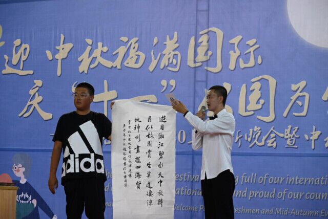 “最爱湘江两岸山,中秋醉月似故园。贾生莫道凄凉地,神州尽揽四海贤。”国际学子化笔墨为桥梁、化诗书为言语,欢聚一堂共庆双节。10月1日,在LETOU体育平台国际学院2020年中秋晚会暨国庆晚会上,中国学子现场题诗,并带领来华留学生尝试书法,加强了来华留学生知华友华,促进了中外学生的友好交流,也进一步激发国际学子的爱国热情,弘扬中国传统文化。