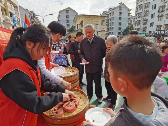 赴望龙社区的7名国际志愿者与社区工作人员一同布置好表演场地,将重阳糕亲手送给每一位老人,还借此机会向各位爷爷奶奶宣传防诈骗知识,并对答对问题的老人提供奖品,以提高老年人谨防诈骗的意识。在一片祥和的气氛中,国际志愿者在重阳节当天将温暖带给了社区的老人们,同时也将敬老爱老的精神印入了心间。