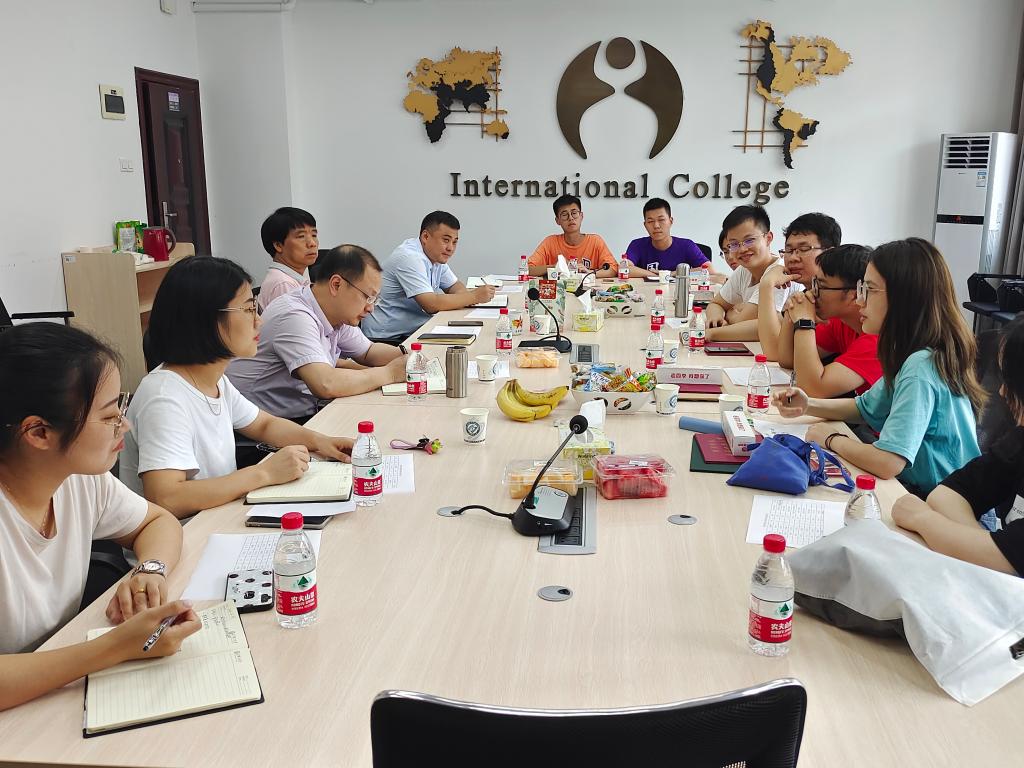 6月25日上午,国际学院2021届毕业生座谈会在新能源大楼416会议室举行。国际学院党总支书记刘安生、院长吴迪龙、学院党总支副书记兼副院长乔法光、副院长秦卫星、毕业年级辅导员易芙蓉、教务办罗帅及9名2021届毕业生代表参加了座谈会。