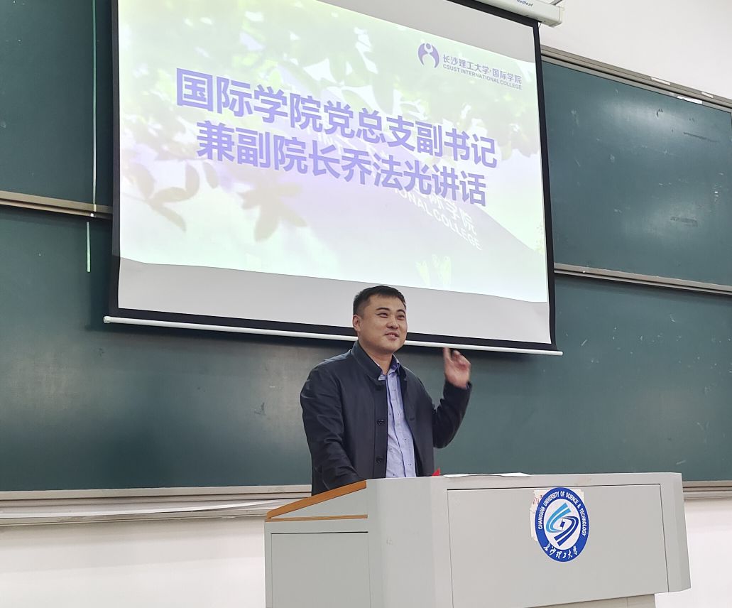 最后,国际学院党总支副书记兼副院长乔法光讲话,他强调,对于未来,要结合自身情况,全方位综合考量,合理规划大学生活,实现个人目标;对于当下,要树牢安全意识,严守纪律,扎实对待学业。希望全体2019级中外合作办学项目学生摒弃浮躁,沉着蓄力,做新时代的有为青年。