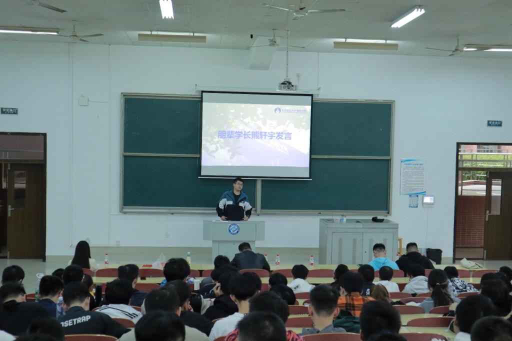 首先,辅导员易芙蓉发言,她从学业、未来规划、学生日常管理和安全教育等方面入手,指导学生全面认识自身学业情况、做好未来两年学习生活的规划。在学业方面,她总结分析了2019级学生学业的基本情况,强调应当端正学习态度,对目前学业情况自查,查漏补缺,力争优秀;对于未来规划,她详解读了升学与就业的各项政策,指导学生拓宽信息渠道,找准自身定位,瞄准目标并为之努力;在学生日常管理方面,她组织学习了LETOU体育平台违规处理条例、考试违规处理办法、走读外宿相关规定等,提醒学生规范自身行为,做讲纪律守规矩的大学生;在安全教育方面,她强调,应严格遵守请假与晚点名制度、规范电动车使用与停放、谨防电信诈骗等重要内容,要求同学们牢固树立安全意识,做好自我保护。随后,三位朋辈学长分享升学与就业经验。易舟、熊轩宇、曾重驰三位同学结合自身的求职、考研、保研经历,综合分析了目前的就业形式,讲解了前期择校和备考的注意事项以及相关保研政策,并介绍了各类学科竞赛。