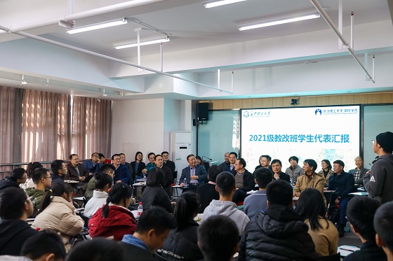首先,各年级教改班学生代表分享了在校学习、生活的思考和体会,汇报了教改班集体和个人在班级建设、学科竞赛、文体活动等方面取得的成绩,感谢学校对教改班的指导和关怀,立志扛好长理拔尖人才培养的大旗。