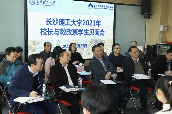 11月23日下午,校长曹一家来到国际学院学术工坊,与教改班学生面对面座谈。副校长刘朝晖、黄创霞出席了会议,教务处、学工部、招就处、校团委、评估中心、心理中心等职能部门负责人和交通学院、土木学院、汽机学院、水利学院、电气学院、能动学院、创新创业学院、国际学院负责人与会。座谈会由副校长刘朝晖主持。
