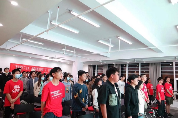 首先,谭哲午带领团员们学习习近平总书记在中国人民大学的讲话精神。他号召同学们共同践行“不负韶华,不负时代,不负人民,在青春赛道上奋力奔跑,争取跑出当代青年的最好成绩。”随后,杨富坤、李家鑫、向科全、龙华强、余福源等7名团员代表从共青团的成立、团旗团徽团歌的规范使用、共青团的章程、早期团员黄爱的故事、张太雷与共青团的故事等角度向大家介绍建团百年来的峥嵘历史,分享自己的思考,团员们的宣讲情绪饱满,他们表达了对悲壮历史的缅怀令人动容,对前辈英雄的敬意,及为祖国建设添砖加瓦的决心与担当催人奋进。