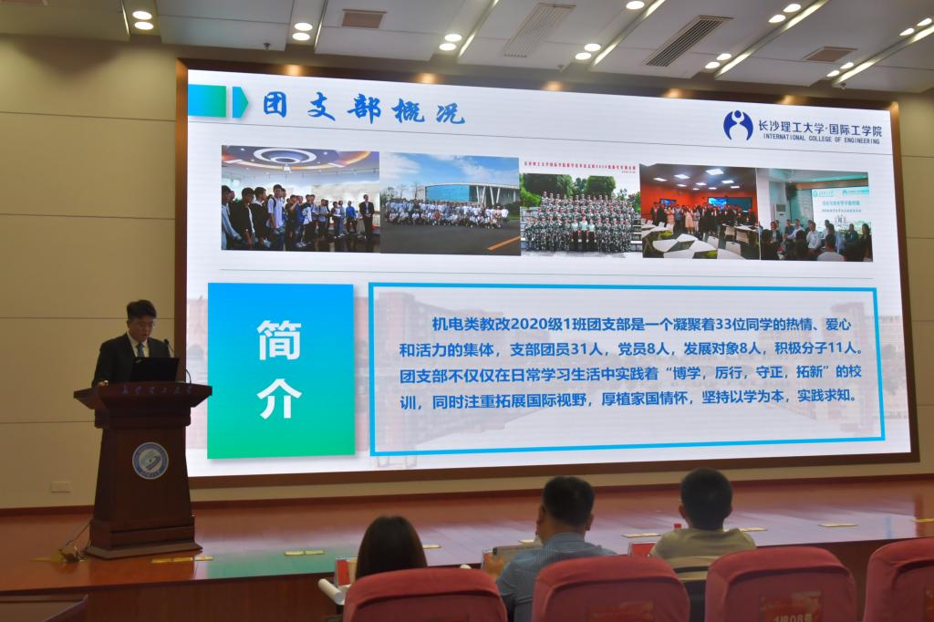 赵胜祥作为团支部代表进行发言,分别从“思想进步,青春心向党”、“学风优良,科技成果丰富”、“投身实践,做公益模范先锋”“文化育人,全方位发展”四个方面介绍了其团支部成员“思想觉悟高,向党组织靠拢”、“学习成绩优异,竞赛成果丰富”、“以公益礼赞时代,用汗水浇灌未来”、“文体助力全方位发展,活动增强班级凝聚力”。