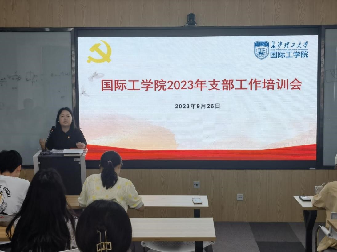 9月26日下午,国际工学院学生党务中心于新能源大楼一栋404开展2023年党支部工作培训,培训由学生党建辅导员易芙蓉主持,学院各学生党支部书记、支部委员、全体正式党员和学生党务中心主要干部参加。