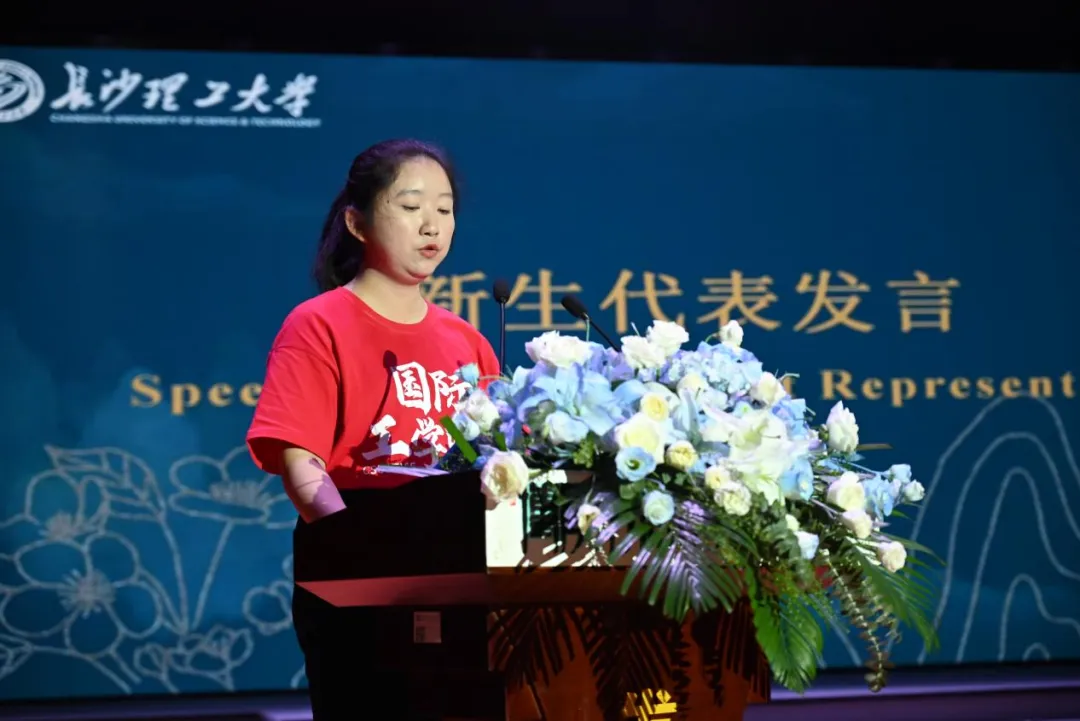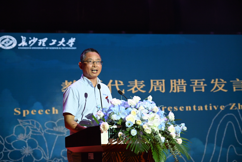 教师代表周腊吾教授发言,他强调“情怀”“学习”和“锻炼”,激励新生树立正确的学习态度和(来华留学生王达观(肯尼亚)作“成长在长理”主题报告)