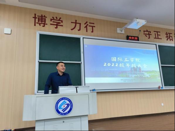 “同学们认为传统签到方式怎么样”“你遇到最特别的签到模式是什么”......,4月2日晚,国际工学院在云综教B102教室召开2022级年级大会,学院党委副书记兼副院长乔法光、年级辅导员、优秀朋辈代表及2022级全体学生参会,会议由年级辅导员易芙蓉主持。