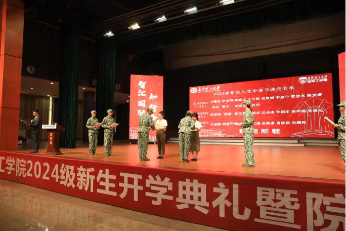 2024年9月25日,国际工学院在云塘校区大会堂举行2024级新生开学典礼暨院长第一课。学院领导老师、教师代表、新生班主任、军训教官及2024级全体新生参与典礼。