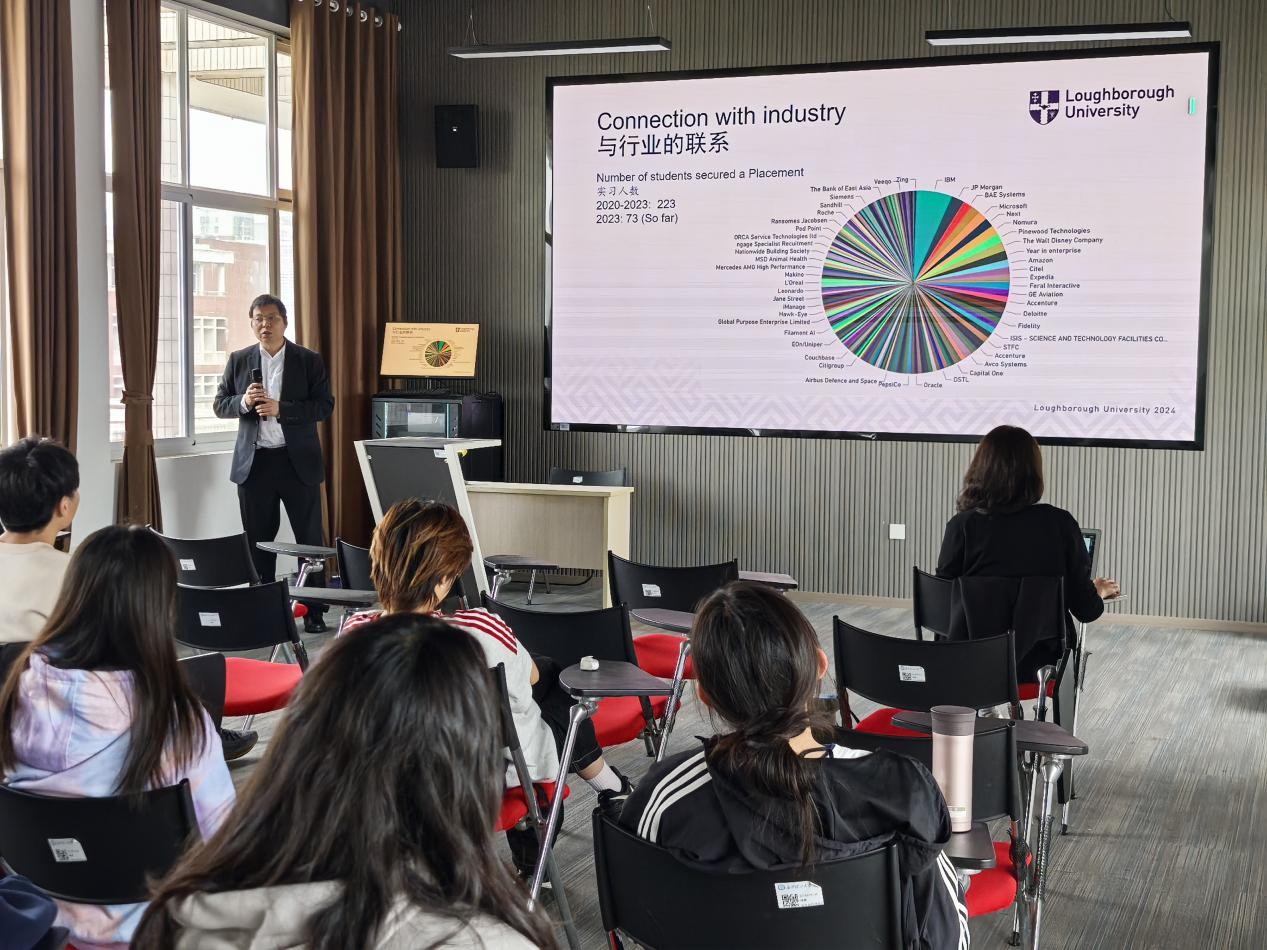 活动开场,方辉副教授作为团队代表,以亲切且诚挚的致辞表达了拉夫堡大学对本次交流的期待。他详细介绍了拉夫堡大学针对项目学生制定的专属入学政策,通过实景影像与数据展示,生动呈现校园中先进的科研设施、舒适的生活环境及多元包容的文化氛围,传递出学校对国际学生的细致关怀。