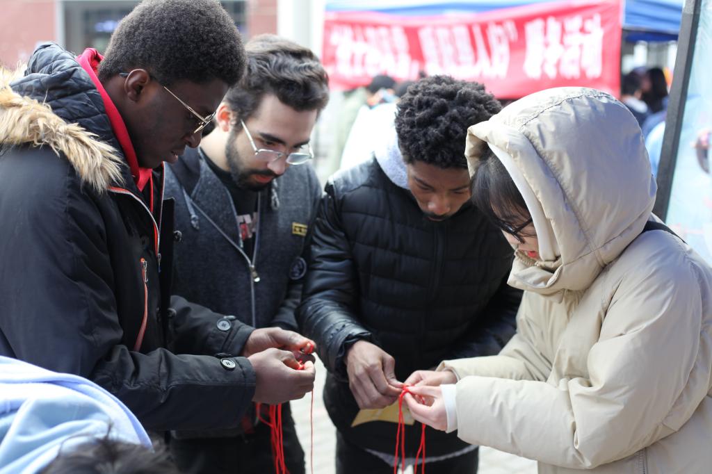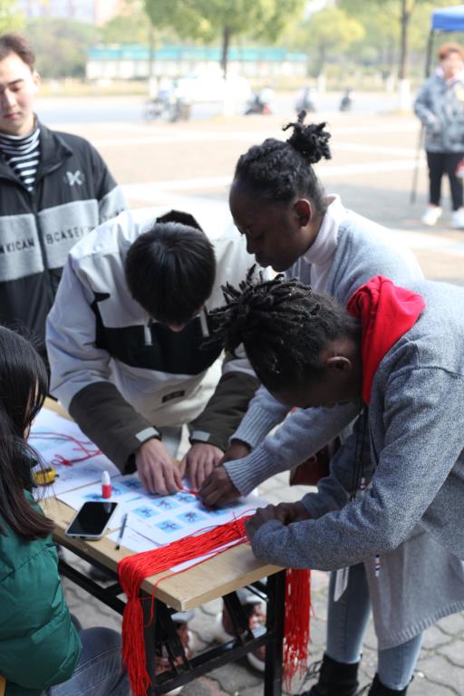 2020年12月20日下午,在云塘校区汀香园广场LETOU体育平台学生社团联合会举办了“战士迎风雪,暖阳照人归”暖冬活动。吸引了来自埃及、孟加拉国、肯尼亚、加纳、老挝、乌兹别克斯坦、布隆迪等十多个国家的30余名留学生参加。活动上开展了丰富多彩的文娱活动,中外学生们四人成组参与了猜歌名、编制中国结、四人三足、看图摆POSE、猜灯谜等互动游戏环节。大家齐心协力,开心参与,一关关通过挑战,小组成员之间配合默契,中外同学间增进了了解、加深了友谊。