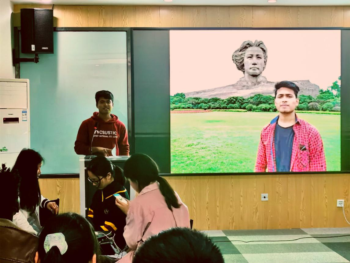 活动伊始,大家分享了自己心中“榜样”的故事与精神。来自孟加拉国的苏汉同学饱含深情地朗诵着毛泽东主席的《沁园春·长沙》,“独立寒秋,湘江北去,橘子洲头...”,抑扬顿挫、声情并茂中饱含着他对毛主席的钦佩与敬仰。来自肯尼亚的王达观同学谈到了特斯拉首席执行官埃隆·马斯克。他说到:“最欣赏和佩服埃隆·马斯克的自律,以及创造新事物的能力”。中国学生王欢乐同学心中的榜样是著名生物学家施一公先生。施先生不惧挫折,始终乐观、积极和坚持的精神深深地影响着他。还有留学生表示在LETOU官网组织的“学习雷锋,美化校园”的志愿服务活动中,切实体验到肩负责任感和志愿服务的雷锋精神以及团队合作精神,在未来要履行雷锋精神,向榜样看齐。即使每个人心中都有不同的榜样,但每一个积极向上、乐观且努力的人都值得我们学习。