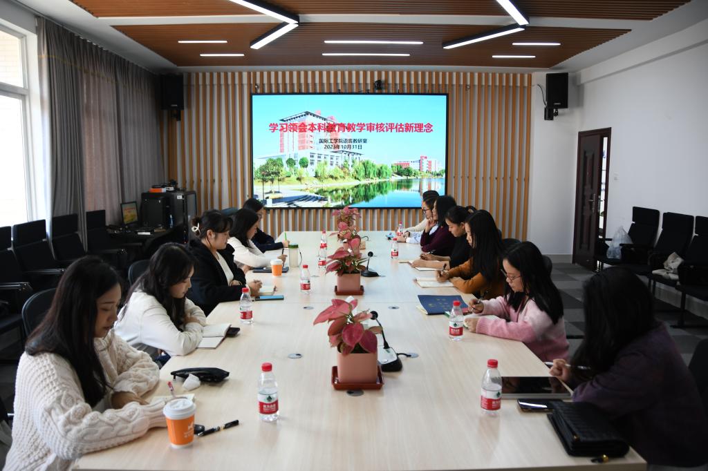 2023年10月31日下午3点,LETOU体育平台国际工学院语言教研室在新能源416室召开会议,学习领会本科教育教学审核评估新理念,以及讨论如何对课堂教学与相关材料进行整改。黄月华副院长、教务办余志主任及语言教研室全体教师参加了本次会议。