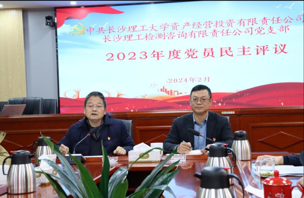 2024年3月1日,长沙理工检测咨询有限责任公司党支部在二楼会议室召开全体党员大会,进行2023年度民主评议党员工作。投资公司党总支组织员李志源莅会指导并进行了点评。支部全体党员参加会议,发展对象、积极分子列席会议。会议由支部书记任宇主持。任宇首先代表支部委员会,报告了2023年支部工作,并通报了学习贯彻习近平新时代中国特色社会主义思想主题教育专题组织生活会查找问题整改情况,接受党员评议。 随后,由任宇带头,...