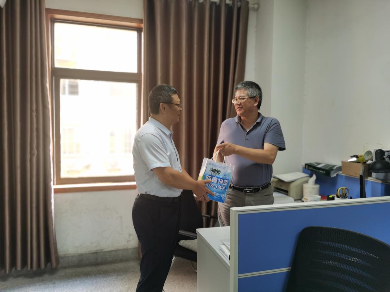 8月14日,夏日炎炎,热浪滚滚。检测公司总经理任宇带队深入公司各部门、市内项目组开展夏季送清凉活动,看望慰问坚守工作岗位的一线职工,把清凉解暑物资送到职工手中,把公司党支部、工会的关心关爱送到职工心坎上。