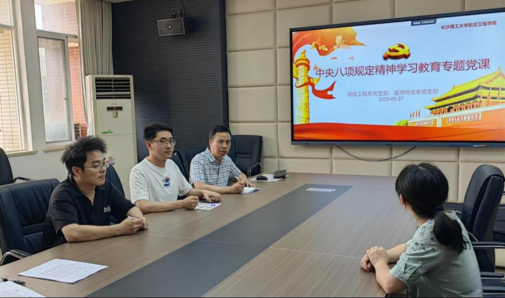 5月27日,航空工程学院测绘工程系和遥感地信系在文科楼C-501会议室联合开展“中央八项规定精神” 党支部专题学习活动。活动由测绘工程系党支部书记戴全发主持,党委书记文丽丽和学院所有在校党员参加学习。