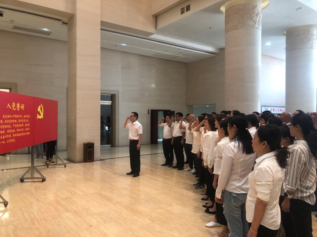 在党史馆大厅,在名为“潇湘魂”的毛泽东、刘少奇、任弼时伟人雕像集团党委书记夏智勇带领全体党员面对鲜红的党旗,紧握右拳重温自己对党立下的铮铮誓言“我志愿加入中国共产党,拥护党的纲领,遵守党的章程,履行党员义务……”次感受作为党员的光荣、使命与责任,表达“不忘初心、牢记使命”的坚定信念。