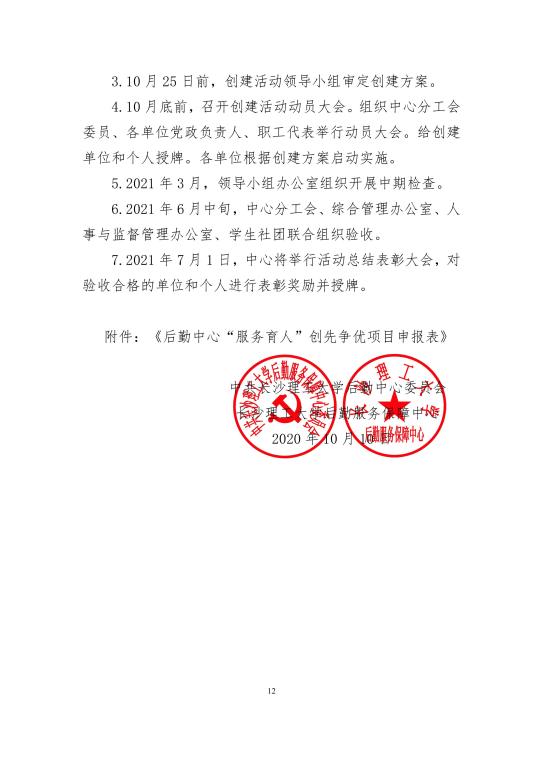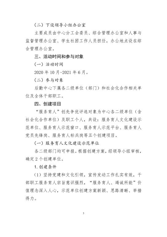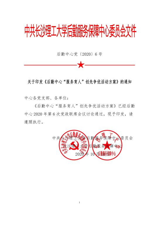 关于印发《后勤中心“服务育人”创先争优活动方案》的通知