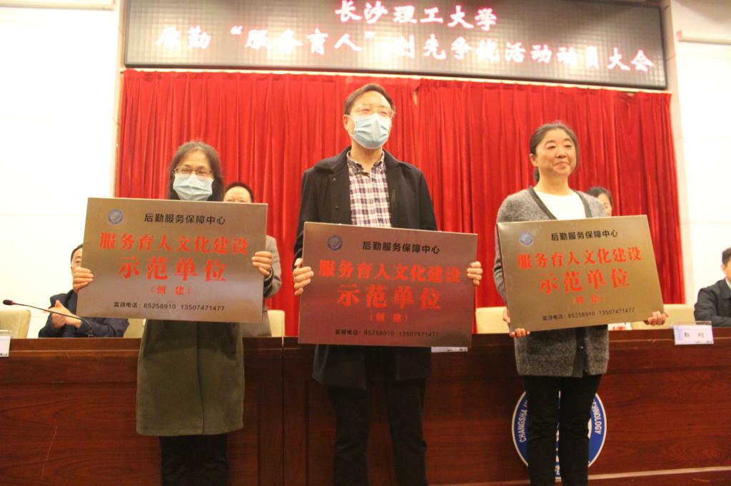 邹宏如作讲话。他代表学校党委、行政对后勤中心全体干部职工长期立足本职岗位勇于奉献、担当作为,以实际行动有力地支持了学校各项事业的发展表示感谢。他指出,“服务育人”创新争优活动的开展,是一次非常有创意、非常有意义的尝试。他希望后勤干部职工提高思想认识,深刻领会活动开展的重要意义,自觉投身到活动中来。通过加强党建引领,文化凝心聚力,后勤干部职工群策群力,切实增强主动性、积极性,真正打造一批优秀服务平台、工作先锋和平凡英雄;作为学校的一员,后勤干部职工要把对学校立德树人核心使命的认同摆在第一位,增强自豪感、荣誉感、责任感,通过优质的服务给学生成长成才以潜移默化的正向激励,切实践行好服务育人初心使命;大力深化后勤改革创新,促进管理服务科学化、规范化、精细化,通过提高质量标准、优化服务程序、创新服务项目、改善服务形象、提升服务品质,让师生享受到“热情、周到、方便、实惠”的贴心服务,赢得师生对后勤服务工作的理解、信任与支持,在学校“双一流”和“百强”大学建设中彰显后勤人的奉献与担当。