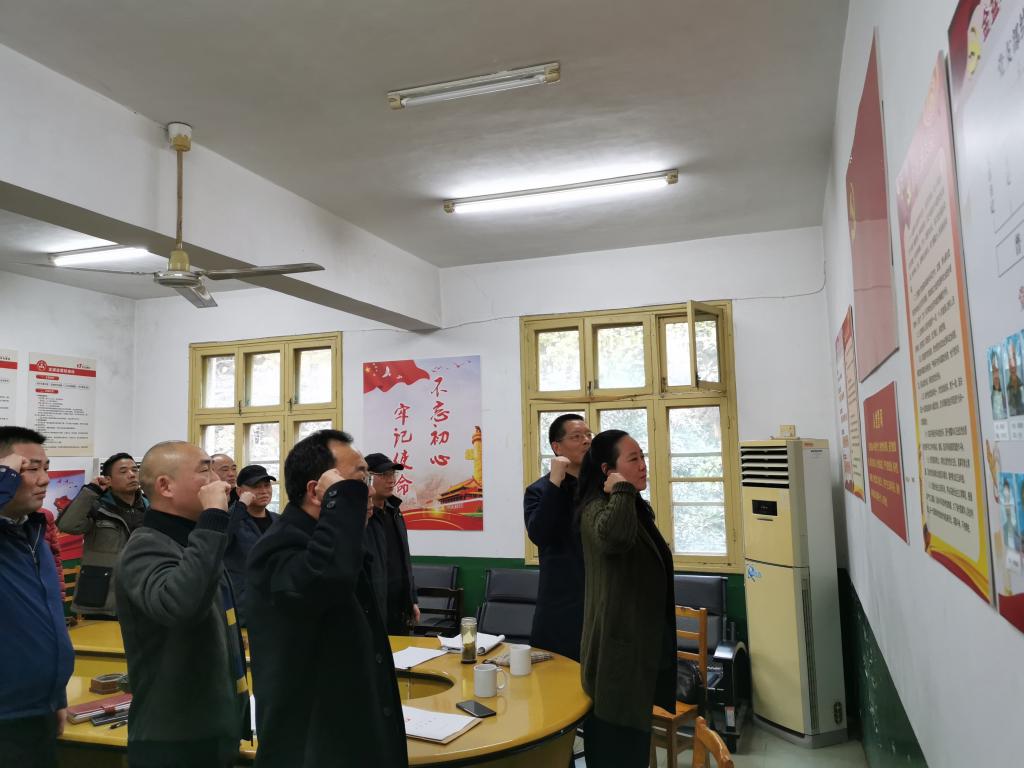 全体党员庄严举起右手,重温入党誓词。