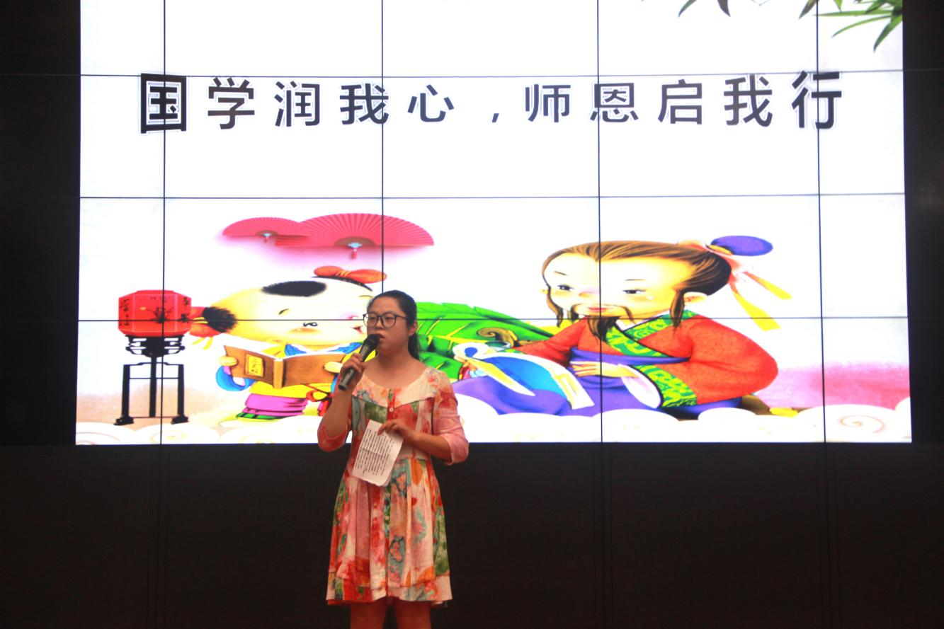 迪迪班胡璟瑄小朋友代表全体毕业生回忆了三年幼儿园生活的点点滴滴,表达了对老师谆谆教诲、悉心照顾的感谢之情,稚嫩的声音中充满了对老师的爱与不舍。