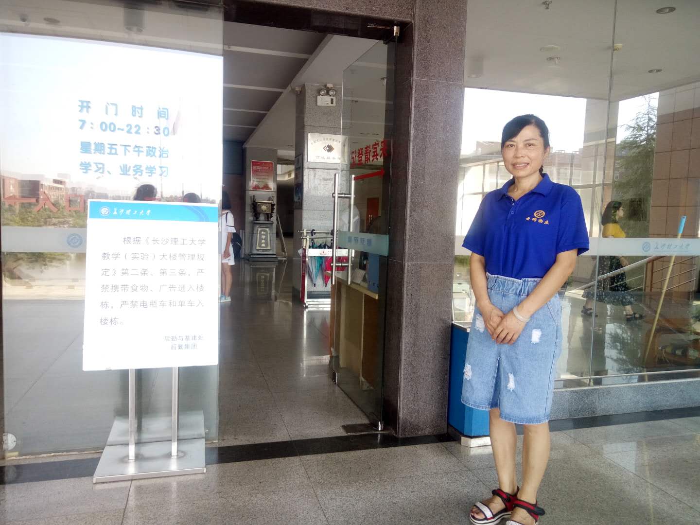 云影婆娑、秋意浓浓,在伏暑炎夏之时物业的工作人员提前半个月对校园进行了一次全面的环境整理,各个教学楼和公共区域进行了清扫,生活、建筑垃圾及时进行了清理,树木花卉进行了精心的养护,并在校园重点区域布置、摆放绿植,虽是初秋却见满目绿荫,生机盎然。他们换上整齐精神的工作服,给同学们带来了星级的服务。