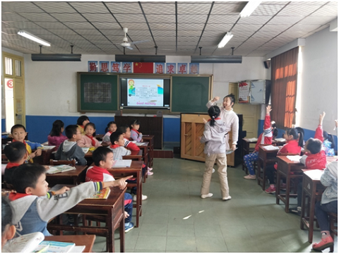 韩婷老师活泼可爱富有亲和力,课堂游戏丰富有趣,学生在轻松、欢快的学习过程中积极参与,学有所得。