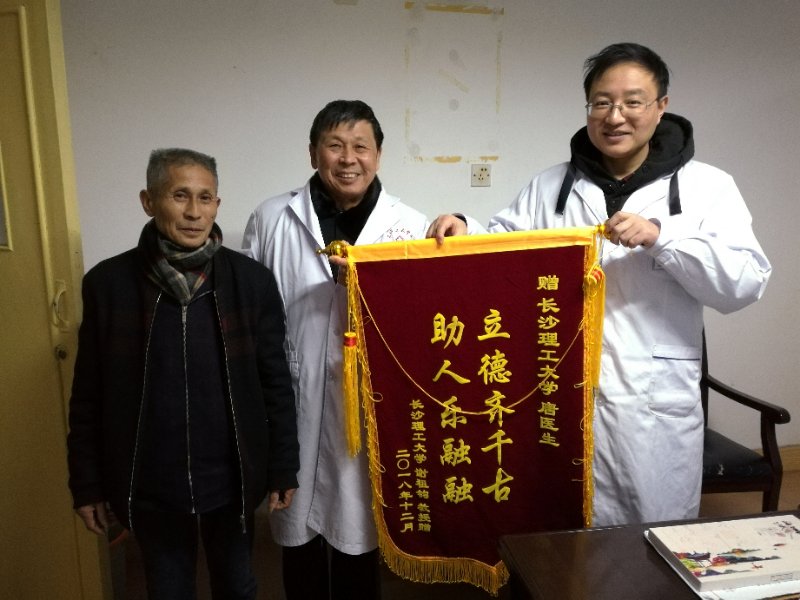 事情还要从元旦前说起,离休职工谢教授找到校医院唐裕伦医生,说起他妻子因为多年来瘫痪在床,基础性疾病多,加上年龄大,这次病情危重,但病人拒绝住院(患者在长沙市三医院住院三天强行出院)。由于儿子定居美国,回家需要时间,希望能想点办法。唐裕伦医生了解情况后,当即决定上门出诊,开药输液,放弃元旦休假为患者治疗,直到患者儿子回国。家属十分感激唐医生,送上红包表示感谢,唐医生一再推脱并拒绝,表示心领了他们的好意,救死扶伤本是他的天职。