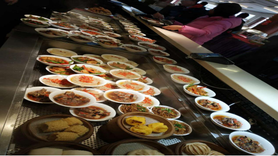 2019年1月18日,国际学术交流中心教工餐共推出菜品十多种,所有菜品全场五折,米饭免费、鲜汤免费、剁椒免费、腐乳免费,每位就餐老师赠送一枚红富士苹果。