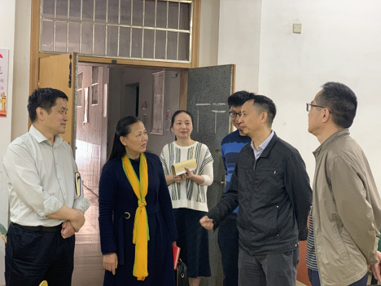 杨伟军以现场看、听、问的方式详细了解子弟学校校园现状、办学情况,感叹子弟学校办学设施落后,教师办公条件艰苦。随后,子弟学校校长余丽英向杨伟军汇报了子弟学校办学历史、成绩及目前发展面临的困难。杨伟军对子弟学校的办学成绩给予了充分肯定,并与集团班子就子弟学校拟与天心区教育局合作办学的管理体制改革思路与协议草案进行了深入探讨。