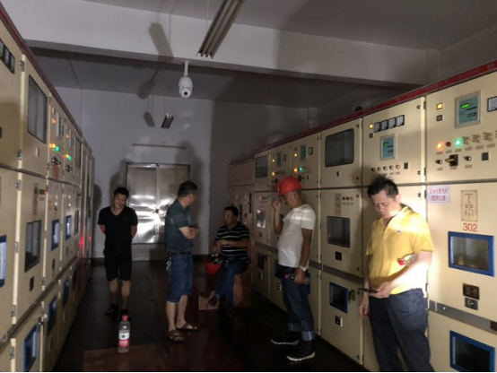 雷电致使全校停电的第一时间,后勤集团就派出维修中心的员工前往排查检修,集团领导亲自带队,坐镇一线,与全体奋战在一线的维修工人共同抗击暴雨带来的困境。