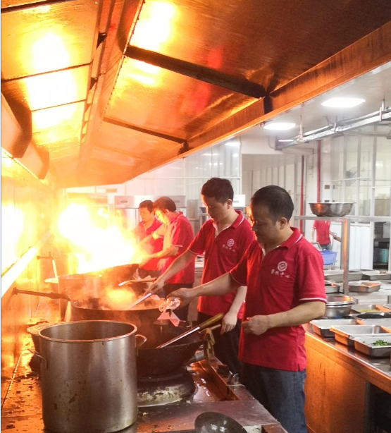 7月,长沙持续高温35°C以上,这给了食堂员工一个艰巨的考验,食堂操作间温度 40°C 以上,但大家仍然兢兢业业坚持工作。