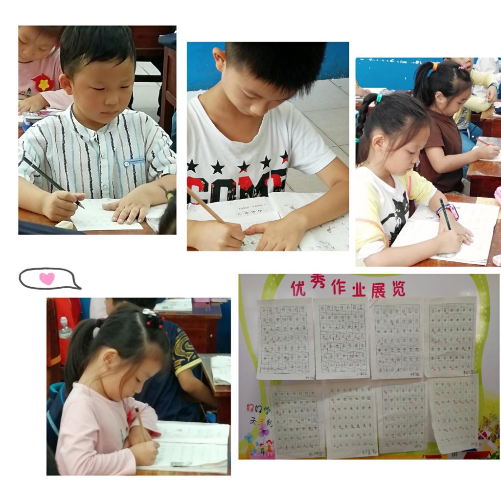 周五上午第三节课,孩子们一个个坐姿端正,目光炯炯,正一笔一划地规范书写汉字,表达对祖国的热爱。