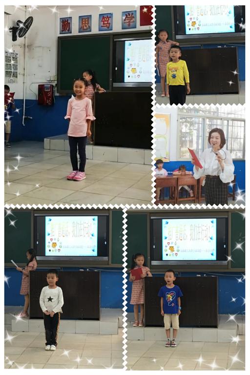 下午第二节,谭向森小朋友一曲《大中国》拉开“我向祖国表白一普通话诵七十华诞“”主题班会的序幕。李老师与张俪琼、李孟颗两小朋友轻松活泼的主持风格让孩子们绽开了美丽的笑脸,彭嘉轩同学维妙维肖地讲故事吸引了所有小朋友的目光,刘瑞琪 、李弘海、李孟颗、吴俊逸、王静姝、徐笔芳、张芯瑜、李钇宣、易佑霖几位小朋友的诗朗诵充满真情,特别是易佑霖小朋友的《乡愁》最显情深。蒋涵、张恒诚、肖梓昂的演唱特别有范,石伟职的绕口令让大家啧啧称赞,卓昱阳的快板更是把班会推向高潮。表演过程中,还穿插有关普通话的知识抢答,寓教于乐,让孩子们懂得:普通话与国旗国歌一样重要,号召大家学好普通话。