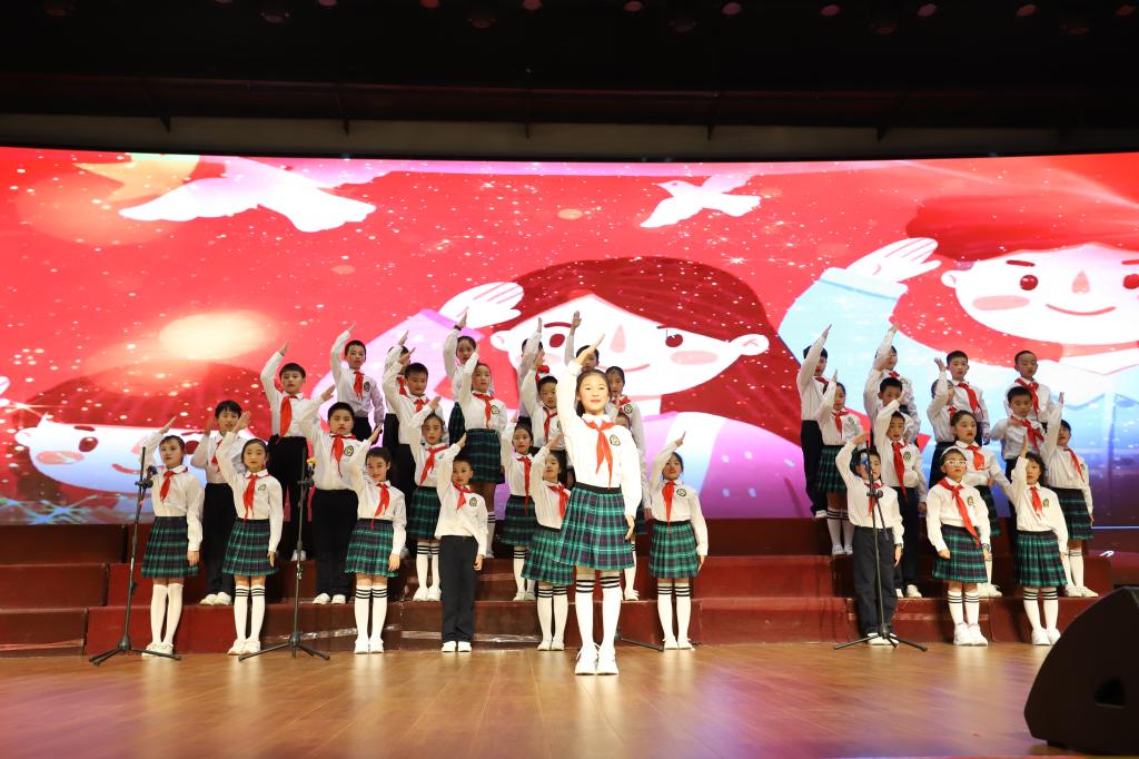 中年级组齐唱、伴唱、领唱,形式多样,别具匠心。《少年少年祖国的春天》、《红领巾飘起来》、《同一首歌》一首首铿锵昂扬的歌曲,无不展现了孩子们积极向上的精神风貌和拳拳爱国之心。各个班级合唱编排形式多样,他们自信满满,在歌声中重温着历史,感受着红色气息。