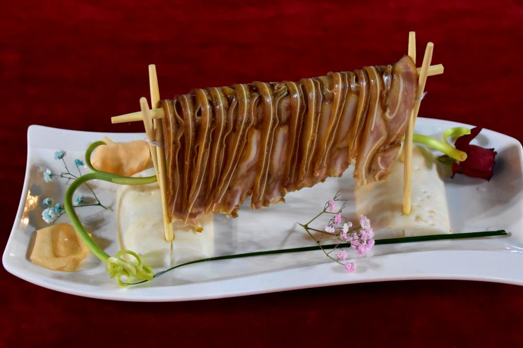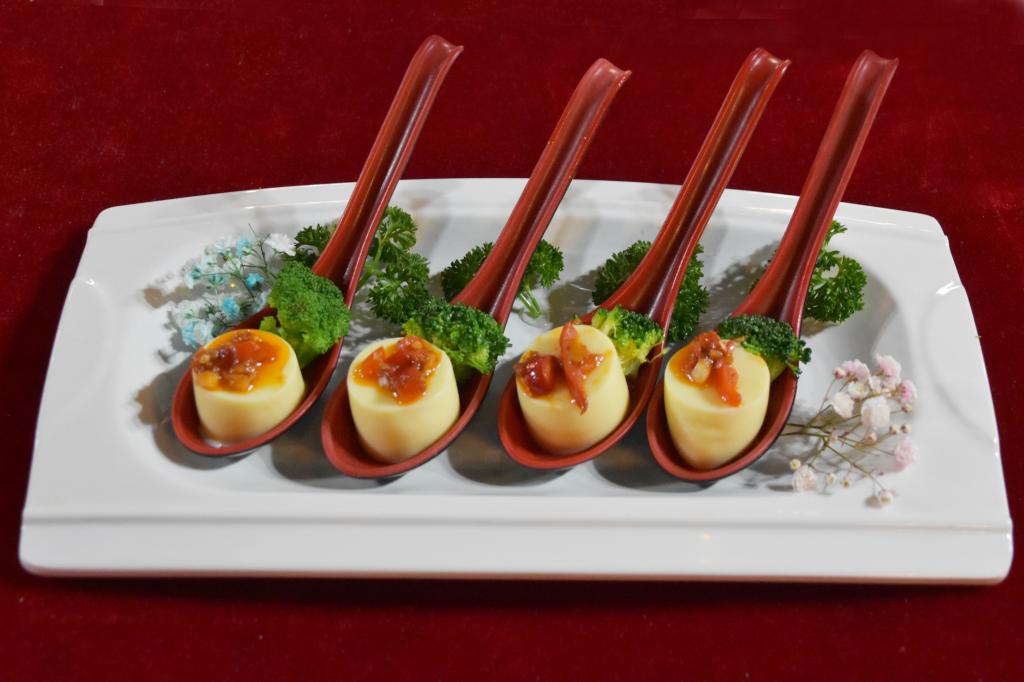 令人瞩目的是,本次开幕式上亮相的精美的食物雕花“江山永固”、“龙腾盛世”和“鹤舞中华”,横亘在舞台正前方,惟妙惟肖,蔚为壮观,堪称艺术品,寓意献礼祖国繁荣昌盛,让众人大饱眼福。为了保证新鲜度和最精美的效果,全部雕花制作都是活动开始前一天由两位雕刻师傅赶制出来的,制作的食材是最普通的生姜、南瓜、西瓜等。