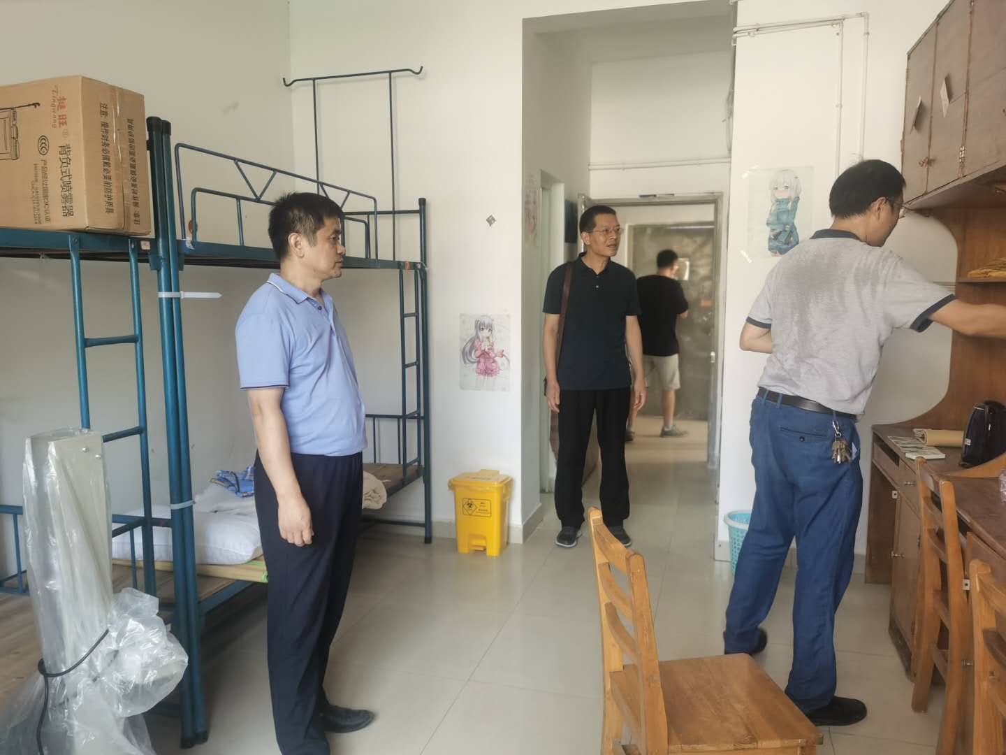 为做好新学期学生返校上课的各项后勤保障工作,8月22日下午,后勤中心主任施一满、党委副书记王明彦等中心领导带领相关部门负责人分成两个检查组,深入金盆岭校区、云塘校区,对开学前的后勤保障工作进行检查。
