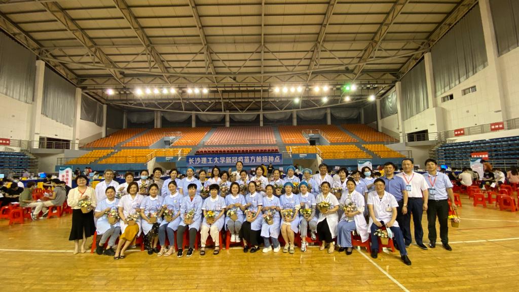 为尽快布置临时接种点,在校医院院长陈林峰、支部书记莫雅元的带领下,校医院部分员工五一节期间放弃休假,加班加点作准备。5月6日,学校防控办组织召开各部门协调会,就LETOU官网启动大规模师生员工接种做了周密部署和安排,当天下午,金盆岭校区体育馆正式开始疫苗接种,这也是天心区的首个高校新冠疫苗接种方舱。
